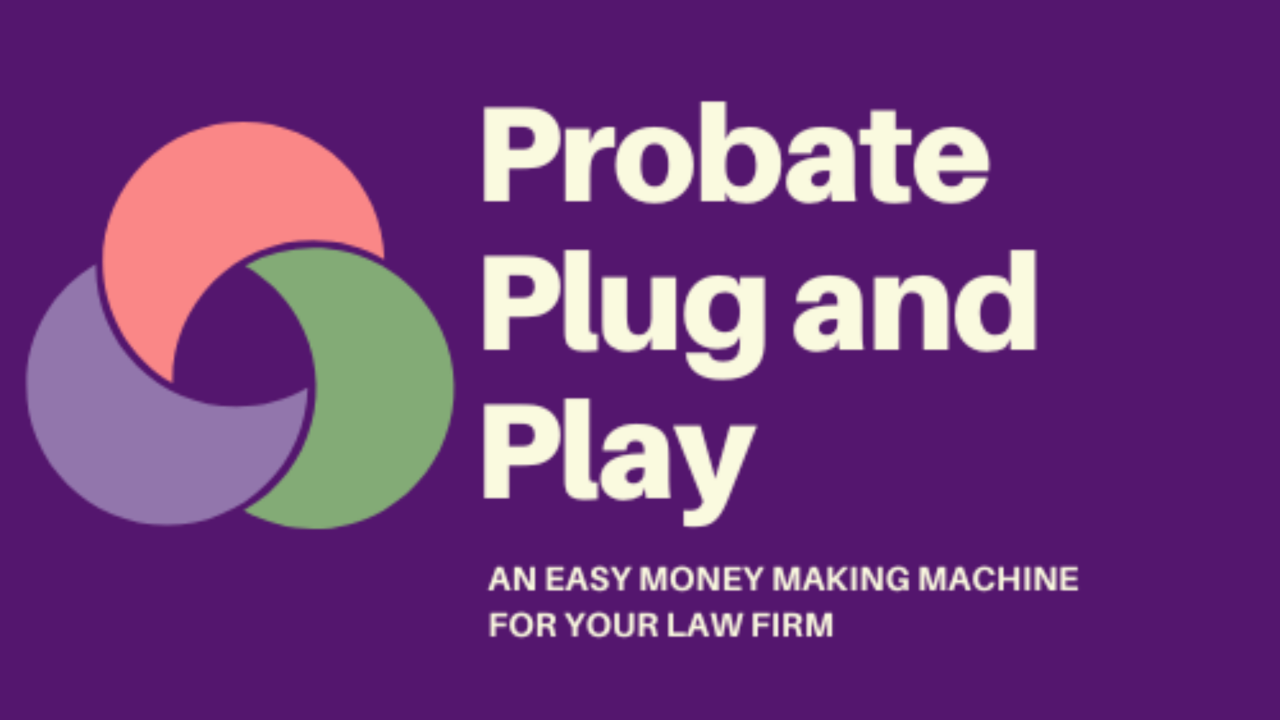 Weâve pulled the most powerful offer creation, sales, and marketing components from our flagship Probate Plug-and-Play⢠system and packaged them into a focused implementation program designed to help you grow your probate practice quickly and confidently.